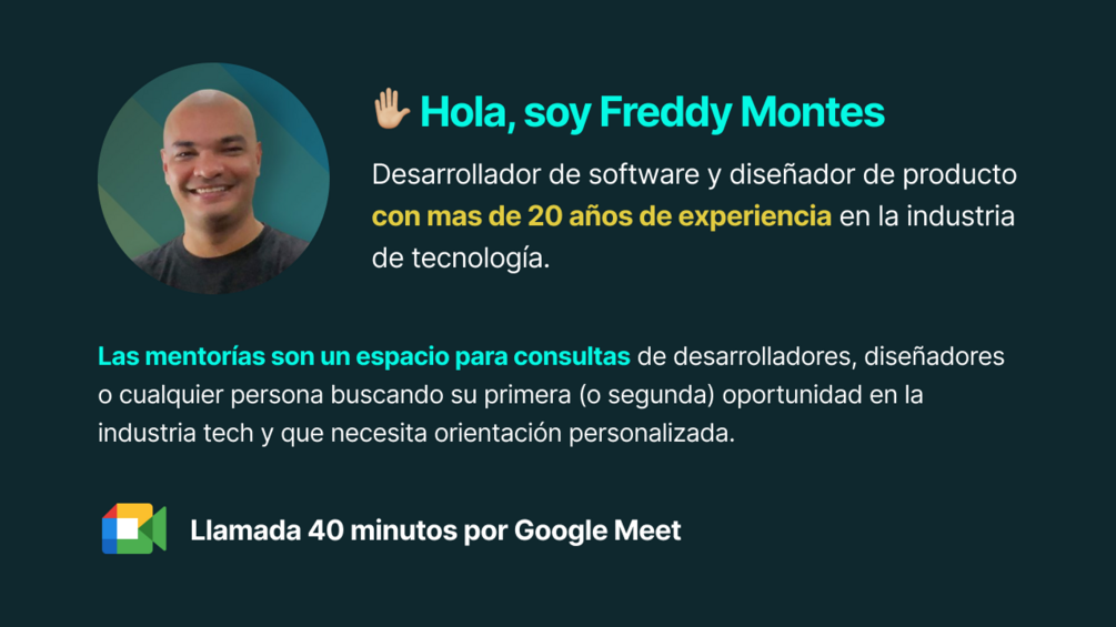 Es un espacio para consultas de desarrolladores, diseñadores o cualquier persona buscando sus primeras (o segundas) oportunidades en la industria tech y que necesitan orientación personalizada.